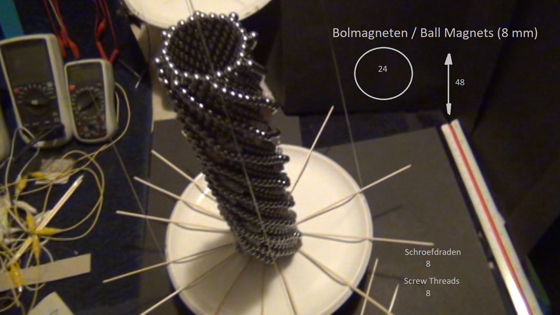 Deze koker met acht schroefdraden is gemaakt van acht mm bolmagneten!